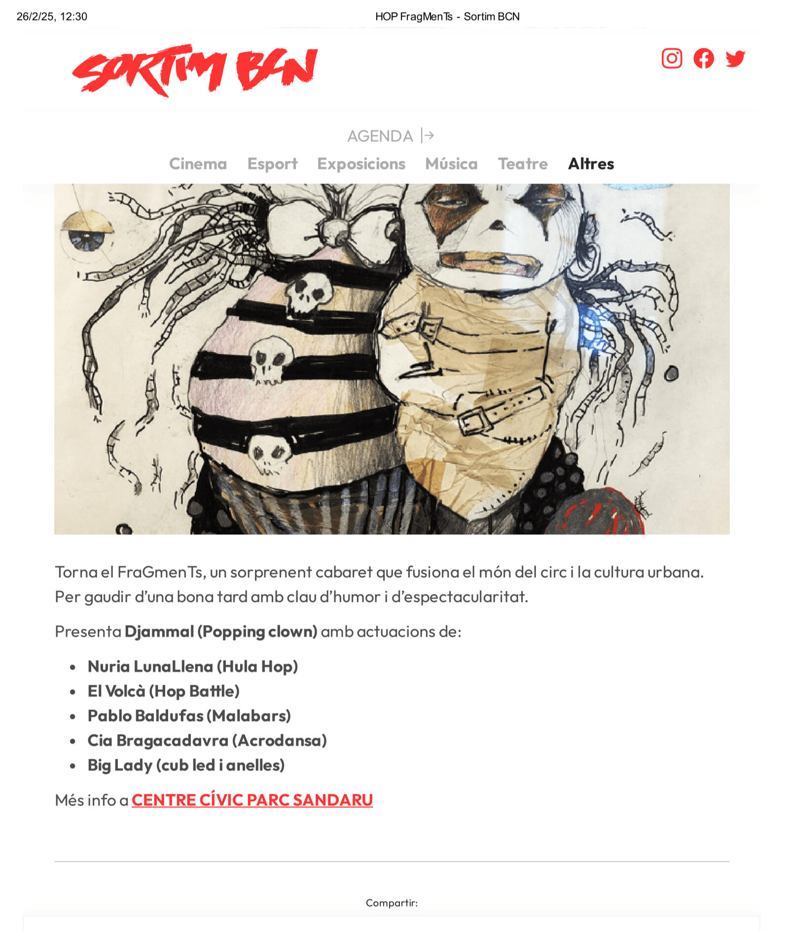 Conoce a Clown on Popping, el maestro supremo de la diversión: un virtuoso del burlesque, un invocador de emociones y, sobre todo, un fanático de la risa. Este bufón extraordinario se ha embarcado en una escapada global para difundir el evangelio de la frescura.Imagina al típico chico guay de tu barrio, el que deslumbra, el que siempre va un paso por delante y el que tiene más carisma que nadie, el epicentro de todo lo que está de moda. Pero aquí viene el giro: lo hace con un estilo cómico que es ingenuamente atrevido, descaradamente travieso y, de vez en cuando, inguenuamente provovador.Según este payaso, dominar el arte de causar una buena impresión es casi una ciencia—una sátira sobre las apariencias que desemboca en una comedia desternillante donde muchos pueden verse reflejados en sus propias realidades sociales. Es un espectáculo de teatro cómico-circense, interactivo y abierto a la participación espontánea del público, desde los 8 hasta los 80 años.Así que prepárate para una montaña rusa de carcajadas, risas descontroladas y ocurrencias disparatadas mientras Clown on Popping te lleva en un torbellino de hilaridad, demostrando com en este mundo, lo mas absurdo se normaliza.